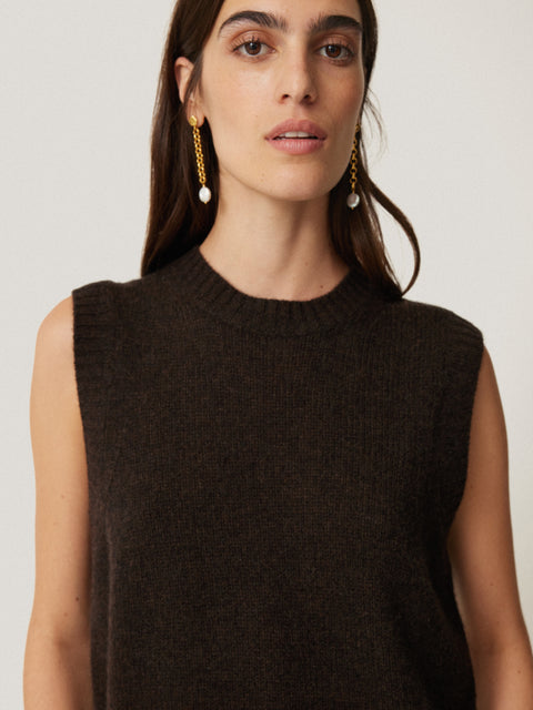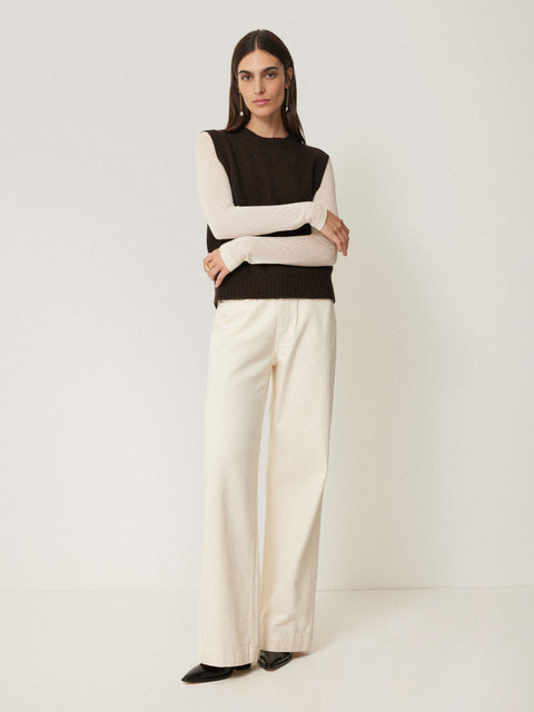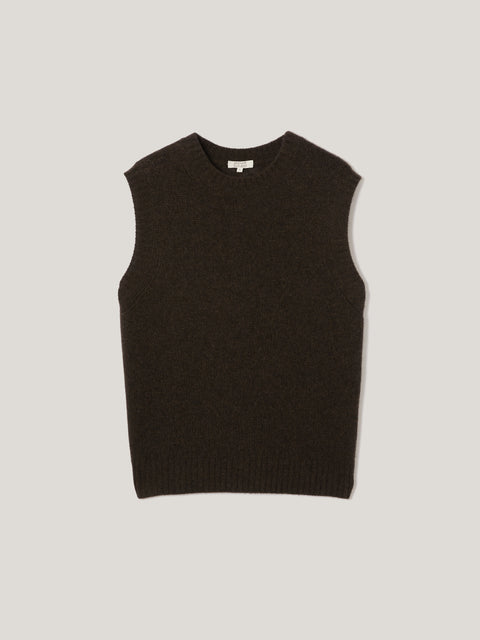 Our best-selling tank arrives in a new fabrication this Autumn: fully traceable Mongolian cashmere sourced from one of the worlds leading cashmere spinners. High crew neckline shape with a deep ribbed hem. Perfect for layering over a shirt or printed dress, or simply wear alone with high waisted trousers. This versatile piece promises endless wardrobe combinations.