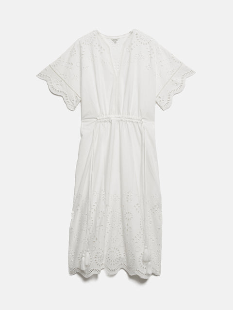 Celebrating the female form in all its glory with an exceptionally crafted, form-enhancing silhouette. The Broderie Kaftan: ladylike, ethereal, graceful.