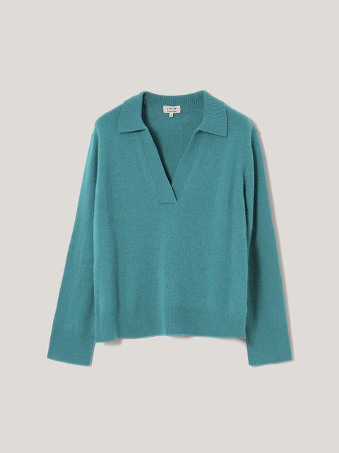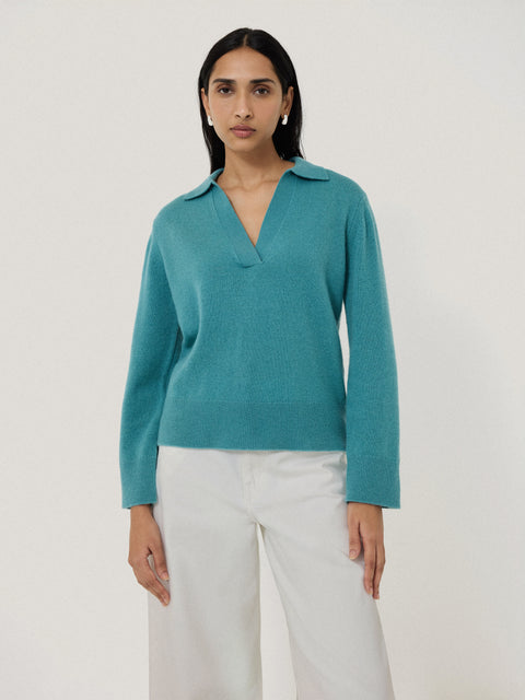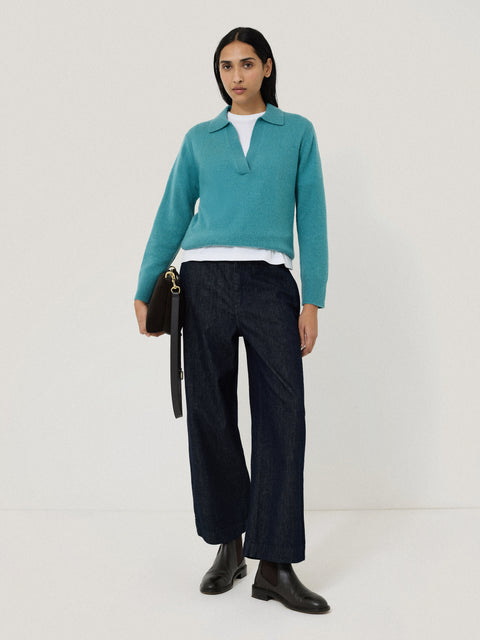 Our signature Compact Wool jumper made feminine with a sultry open neckline and a preppy collar. Super soft in a blend of wool and cashmere, we love the slightly cropped shape for creating a simple half-tuck with jeans, leather and tailoring.