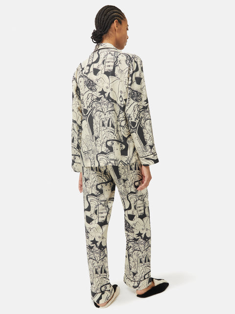 Created in honour of the coronation, our signature pyjama arrives in our exclusive ‘Kings and Queens’ print commissioned by returning collaborator, Janet Lance Hughes. Cut from a luxurious cotton modal blend, it boasts a breathable feel and features exquisite contrast piping and embossed mother of pearl buttons. With its comfortable, relaxed fit, the shirt-style top includes a single chest pocket, while the easy drawstring-waisted bottoms come equipped with side pockets for ultimate ease and convenience.