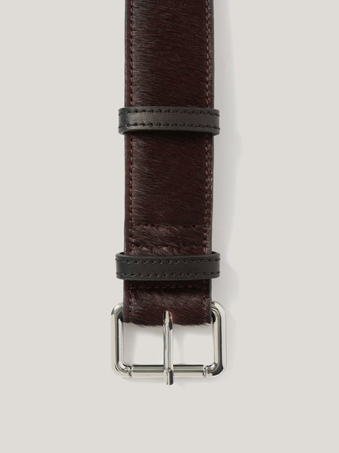 Lend a tactile finish to autumn accessorising with our brown belt. Reworked in a soft and textural calf hair, this piece is perfect for updating any pair of jeans, trousers or shorts.