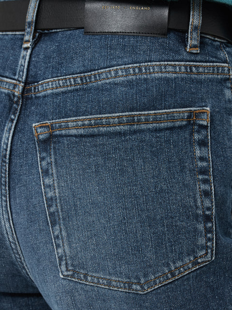 New to our denim collection is the addition of the Balfour denim jean. These jeans are ethically sourced and 100% fixed denim. The cotton is a fresh vintage mid blue eco wash. Sofia is 5'9.5 and wears a size 8