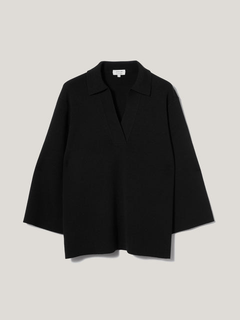 We love the comfort and ease of this knitted kaftan top as the perfect transitional throw-on. Detailed with a spread collar and an open neckline, wear with relaxed denim for a laidback weekend look.