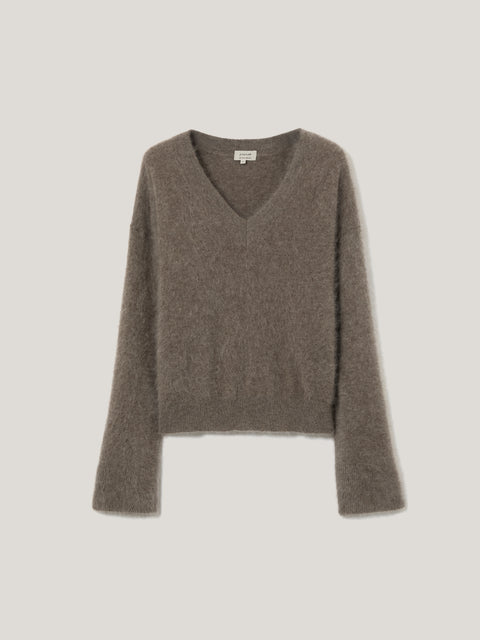 This season sees our signature Halo cashmere reimagined in a boxy V-neck design. Loved for its supersoft fluffy texture created through a special wash, we named this beautiful finish Halo as every time you wear, you will feel as if sinking into a cloud.