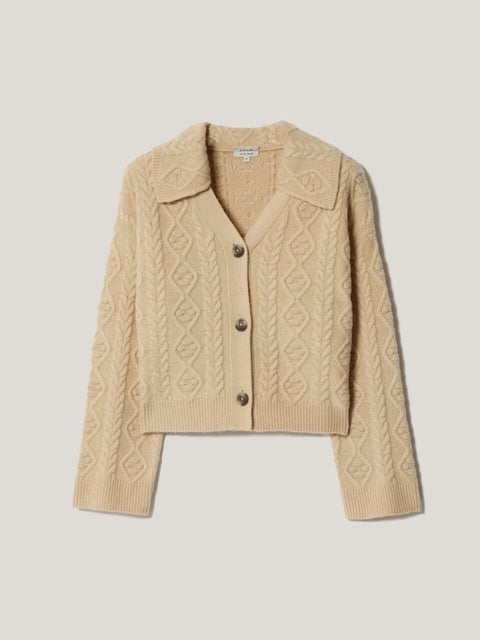 Knitted from Wool Cashmere, our Cable Cardigan is an easy-wearing piece. Featuring horn buttons, a button-front and collar detail, this is a true love forever piece. Aden is 5'11 and wears a size 8