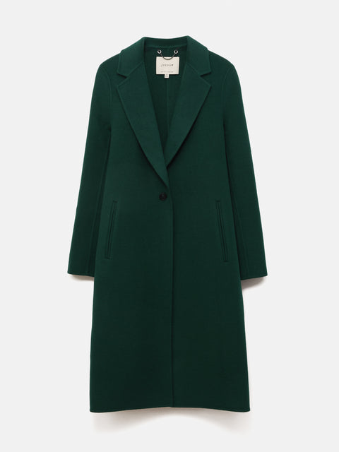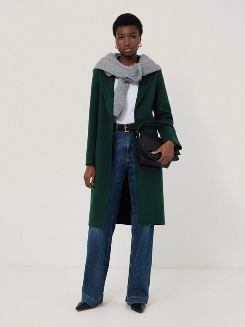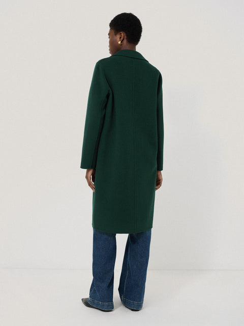 When it comes to our double faced designs, we use secret stitching to bond both pieces of wool together for the highest quality and longevity in every piece. This double faced coat is a lightweight solution for keeping warm, bridging the seasons in a relaxed, single breasted shape which falls below the knee.