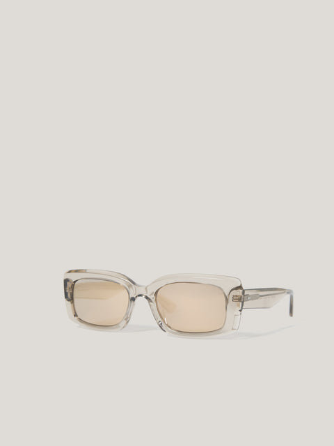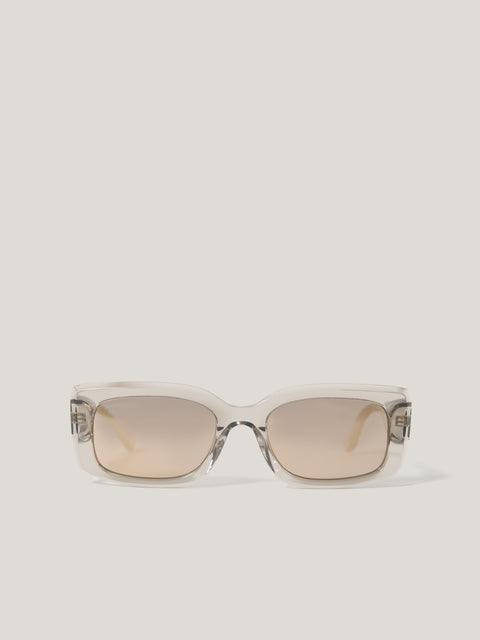 Designed with chunky rectangular frames, these sunglasses will offset your sunshine weather looks with a bold, contemporary edge. Crafted from a sustainable bio acetate, their dark grey lenses have a gold mirrored finish for a further statement.