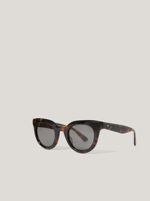 A contemporary take on the classic cat eye shape, these sunglasses have been shaped with a rounded silhouette and have been crafted from a sustainable bio acetate. Fitted with dark grey lenses, their glamorous profile offers UV 400 protection and will delight any sun seeker.