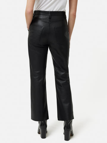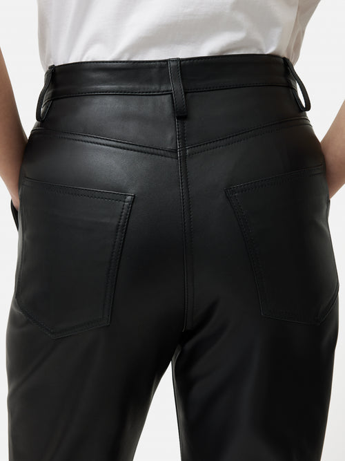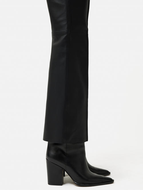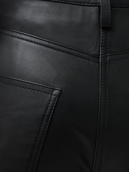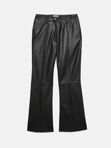 Meet the latest Abby trouser silhouette: A kickflare design meticulously crafted from butter-soft leather, adorned with unique front and back stitching details. The kickflare silhouette not only balances proportions and elongates the legs but also proves versatile for different occasions. A worthwhile investment, these trousers create an ideal frame for your footwear choice, whether it's everyday sneakers or elegant heeled boots.