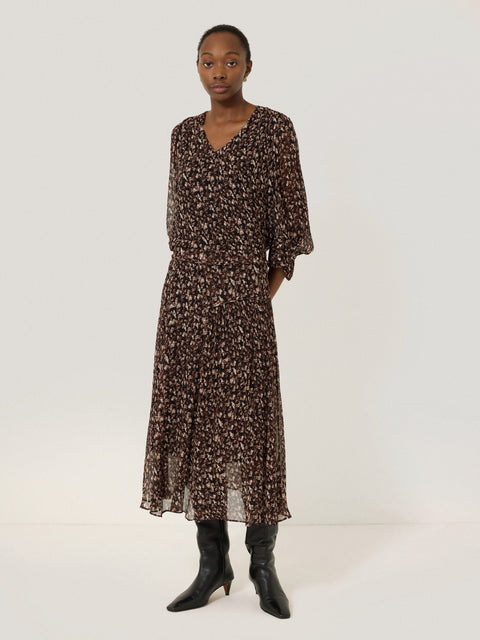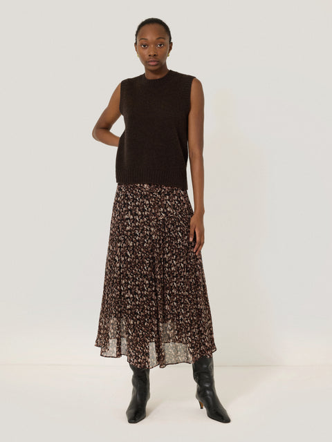 Not your obvious animal print at first glance, this midi skirt has just as much irreverent Britishness as its counterparts in an abstract design. Crafted from a crinkle georgette, it features an elasticated waist at the back for all day comfort and falls elegantly at the calf in rich, earthy tones. Partner with the matching top for a bold head-to-toe look.