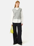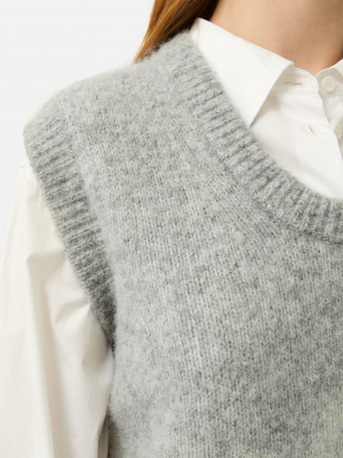 This vest is an absolute essential for layering. Crafted from an alpaca blend, it offers a wonderfully tactile texture that enriches any ensemble. The feminine ‘U’ neckline gracefully showcases the layers beneath, allowing for a chic and adaptable style.