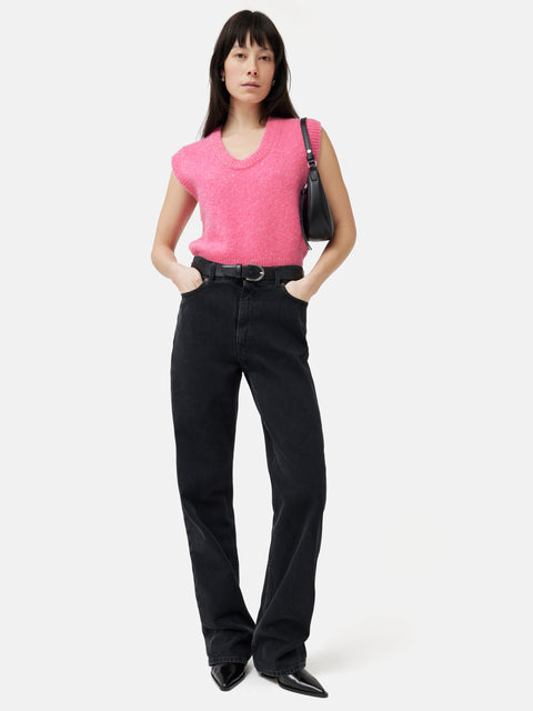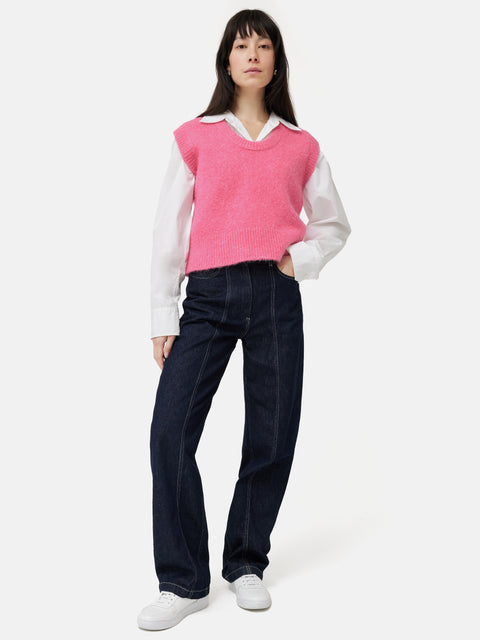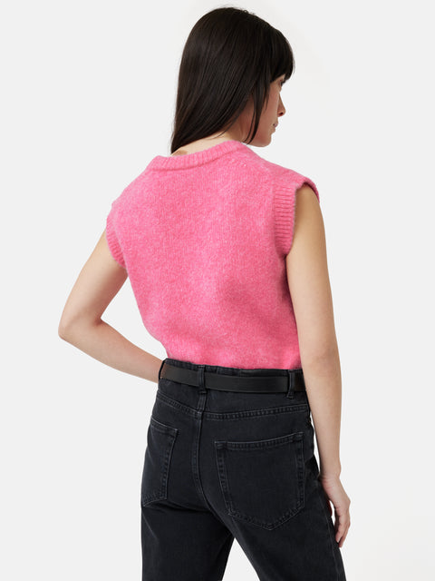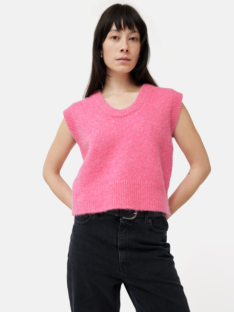 This vest is an absolute essential for layering. Crafted from an alpaca blend, it offers a wonderfully tactile texture that enriches any ensemble. The feminine ‘U’ neckline gracefully showcases the layers beneath, allowing for a chic and adaptable style.