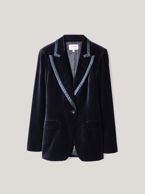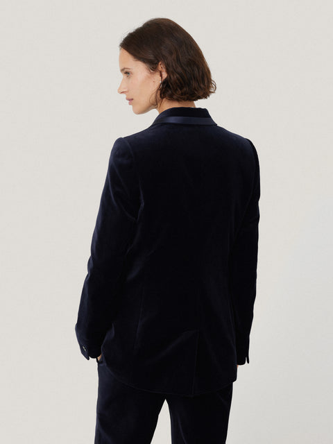 Our answer to the modern tux, the Ashby navy velvet blazer forms part of a full tailored suit in a choice of rich jewel tone velvets. We go against the grain when cutting our velvet to get the fullest colour and depth.