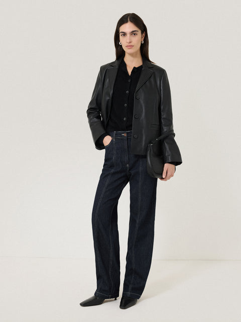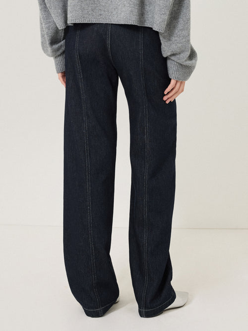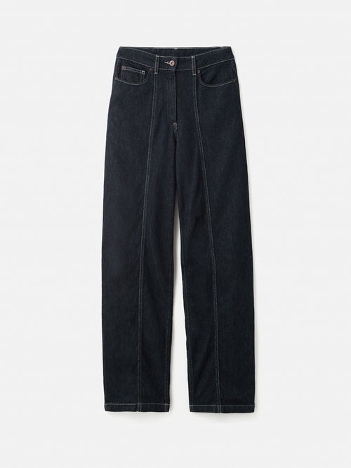The Beck is our authentic 5 pocket loose leg jean, crafted from responsibly sourced denim in an indigo wash. Cut for a regular rise waist, contrast ecru top stitching to the front and seams add refined attention to detail. Size up a size for a more easy fit on the waist.