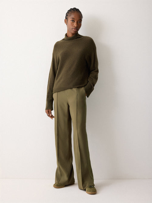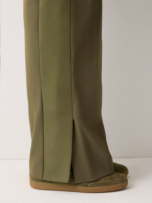 We have elevated the sporty jogger in a soft Italian crepe for wearing outside the confines of comfort. Contrasting side panels and split hem fronts at the leg add a contemporary spin, finished with pin tuck creases.