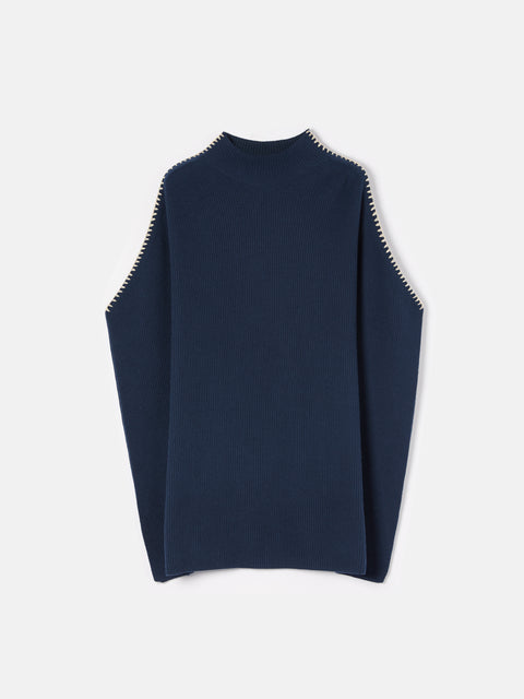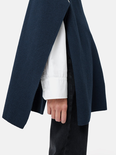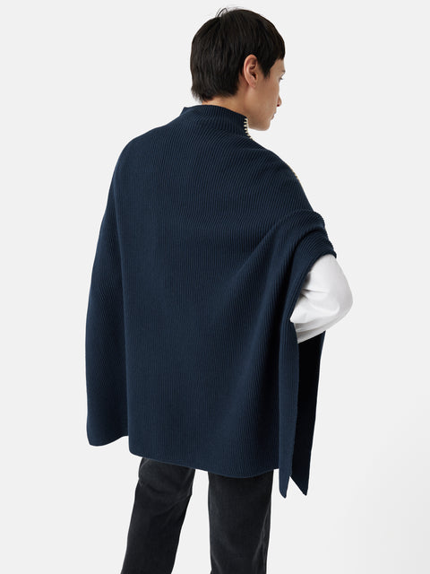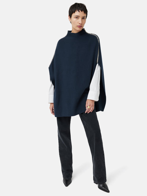 Beautiful poncho hand-finished with contrast blanket stitching across the shoulders and a funnel neckline to keep out the winter chill. The ultimate in versatility, this layering piece is designed to style seamlessly over shirts and tops. Fit and Features