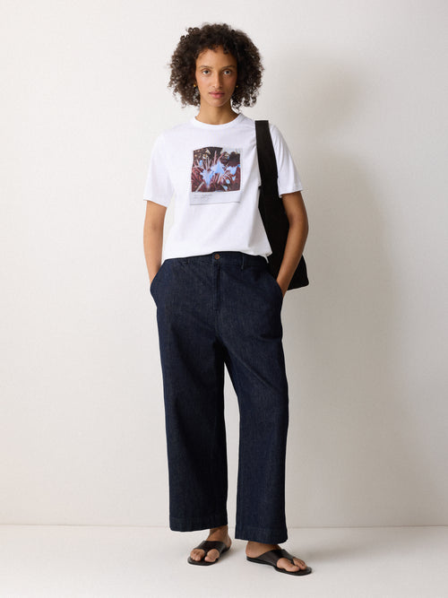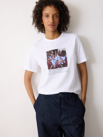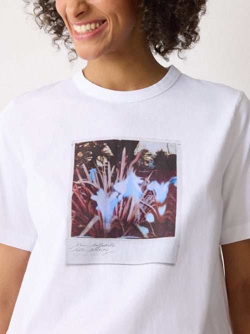 Inspired by Cy Twombly's expressive still-life polaroids, we digitally printed one of our own polaroids taken at Kew Gardens onto a plain white T-shirt. The result was this graphic 'Blue Daffodils' design to add a springlike feel to your basics.