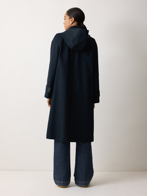 Discover award-winning coats and jackets, voted as winners of Red Magazine’s High Street Style Awards for 2024 and 2025. Using a bonded cotton technique lends this navy rain mac structure, as well as extra protection against the elements. A detachable hood allows for 2-in-1 styling, with a concealed button down front for a streamlined look over all your daytime ensembles.