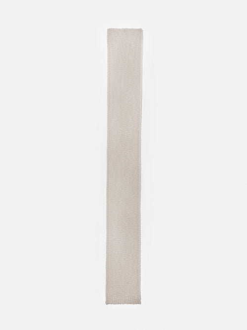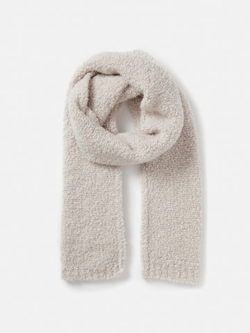 A super sumptuous scarf crafted from cream boucle extrafine merino wool. Boucle means yarn with a looped ply. Keep your neck cosy all season with this perfect winter accessory. Pair with the matching mittens and beanie to complete the look. Fit and Features