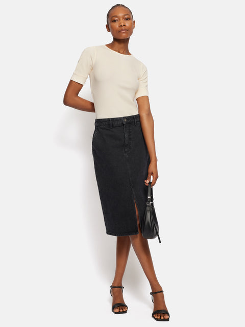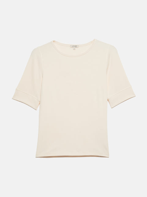 Effortless foundation: This fitted crew neck tee boasts a textured finish, this polished look is enhanced with rib detailing on the cuff and collar.