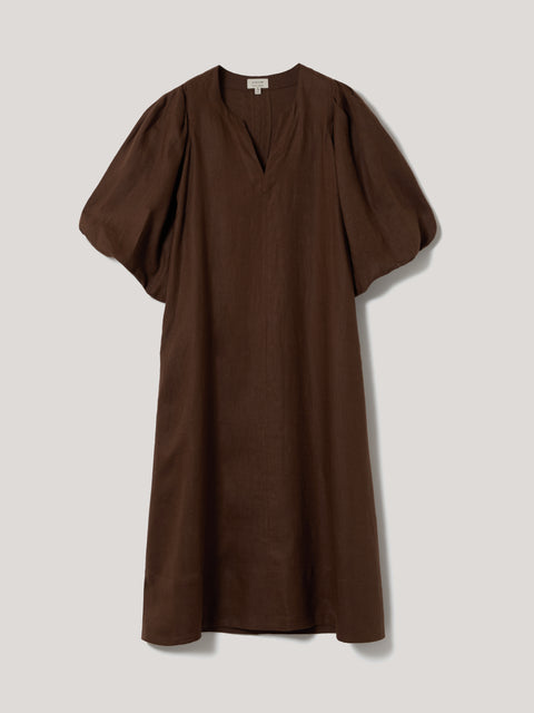 Framed by voluminous puff sleeves gives this midi dress subtle drama for day or evening wear. Airy in a soft, lightweight linen, complete this kaftan style with gold jewellery and a pair of sandals for effortless ease under the sun.