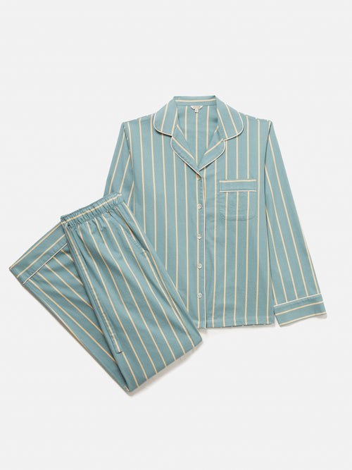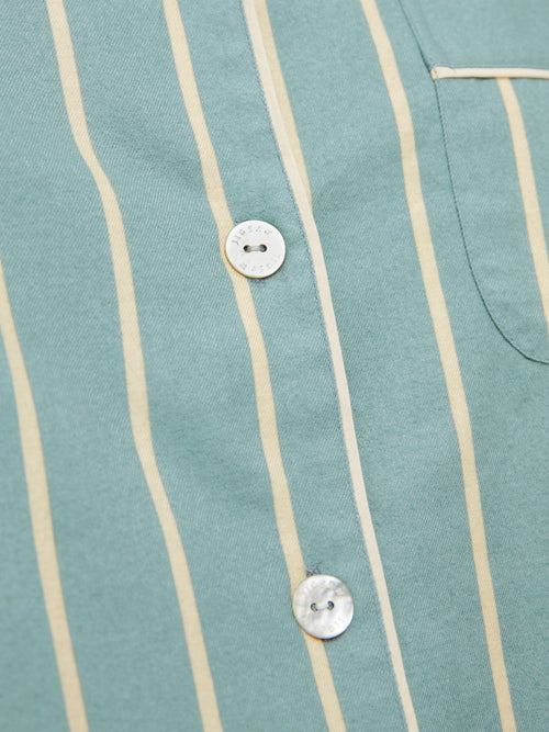 Blending our classic pyjama vibe with contemporary stripes, this ensemble is crafted from a lush cotton-modal blend for unbeatable breathability. It's all about the details, sharp contrast piping, elegant mother-of-pearl buttons, and a relaxed-fit shirt-style top featuring a handy chest pocket. Meanwhile, the easy drawstring bottoms with side pockets ensure a lounging experience that's both comfy and practical. Fit and Features