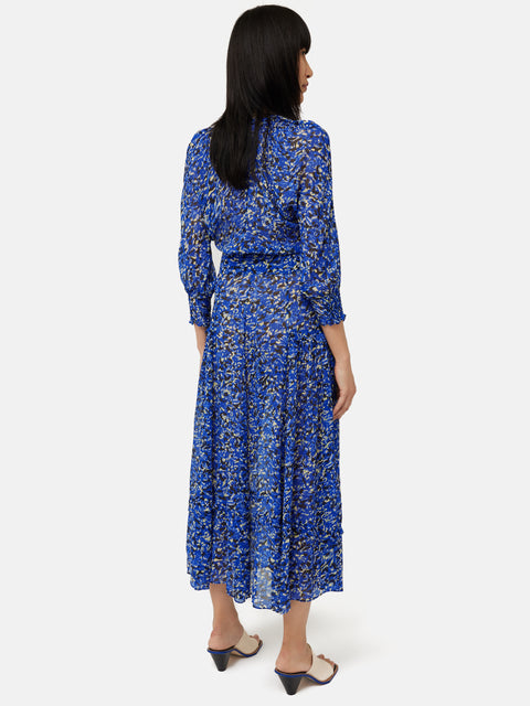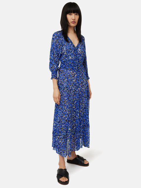 The antidote to day to evening dressing, our Brushwork print appears on crinkled viscose. Flattering v neckline with pretty ruffle and smocking details, 3/4 length full sleeves with part smocked cuffs enabling you to put the sleeves up. Basque waistband, full skirt with ruffle details and invisible side zip. This dress comes with a separate slip dress. Wear with flat boots and a tailored blazer. Matching items available. Fit and Features