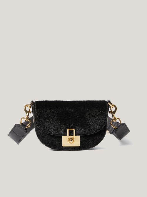 Our bestselling Denbigh bag has been reworked in calf hair for the new season, lending a tactile finish to your look. A studded trim around the base toughens up the soft crescent shape, with an adjustable crossbody strap. A bag which will take you from day to night with your essentials close at hand.