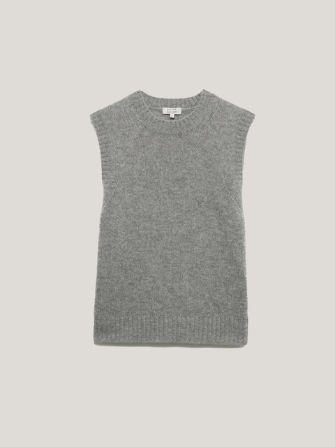Our best-selling tank arrives in a new fabrication this Autumn: fully traceable Mongolian cashmere sourced from one of the worlds leading cashmere spinners. High crew neckline shape with a deep ribbed hem. Perfect for layering over a shirt or printed dress, or simply wear alone with high waisted trousers. This versatile piece promises endless wardrobe combinations.
