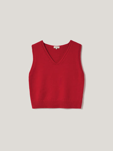 Chunky Cotton Blend V Tank | Red