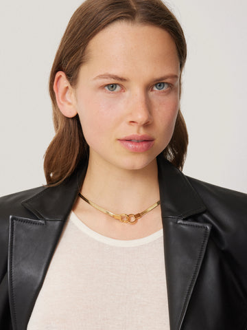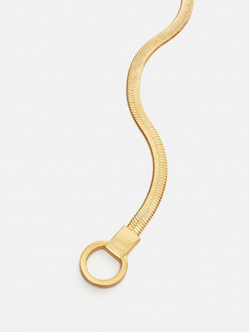 A vintage-inspired aesthetic with 24-carat gold plating. Our bespoke Chunky Snake Chain Necklace is finished with a front spring clasp fastening that can also be concealed backwards. Pairs well with your existing jewellery edit, or the matching bracelet/ earrings.