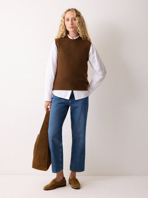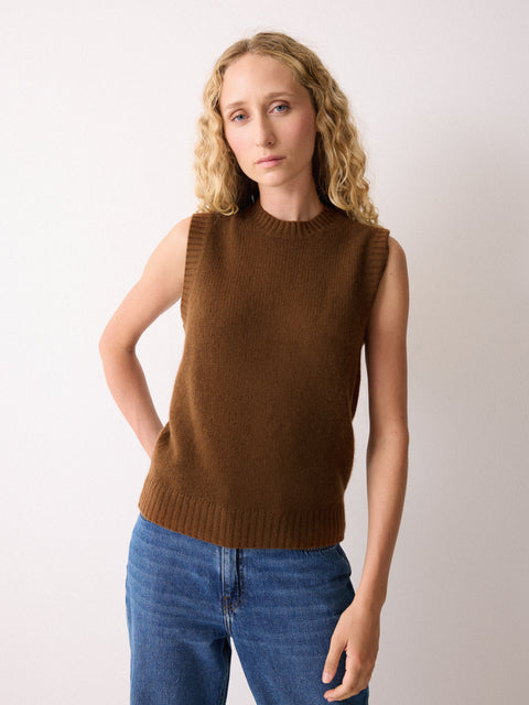 Designed for transitional layering throughout the cooler seasons, this crew neck tank top highlights the sumptuous, lofty feel of Cloud cashmere, which has been knitted off gauge. Finished with ribbed trims, it’s perfect worn on its own or over a crisp long-sleeve shirt. Elfie is 5'10 and wears a size 8
