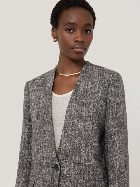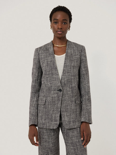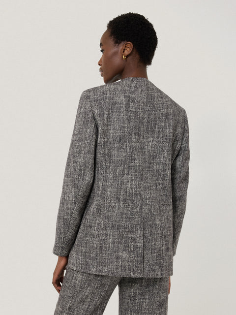 Tailoring with a Jigsaw twist; this sleek jacket is cut for a sleek, longline silhouette with a collarless neckline as a spin on classic details. Designed in a textural boucle fabric, we love this jacket with the matching trousers as well as dressed down with a T-shirt and jeans.