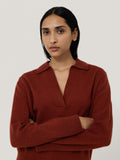 Our signature Compact Wool jumper made feminine with a sultry open neckline and a preppy collar. Super soft in a blend of wool and cashmere, we love the slightly cropped shape for creating a simple half-tuck with jeans, leather and tailoring.