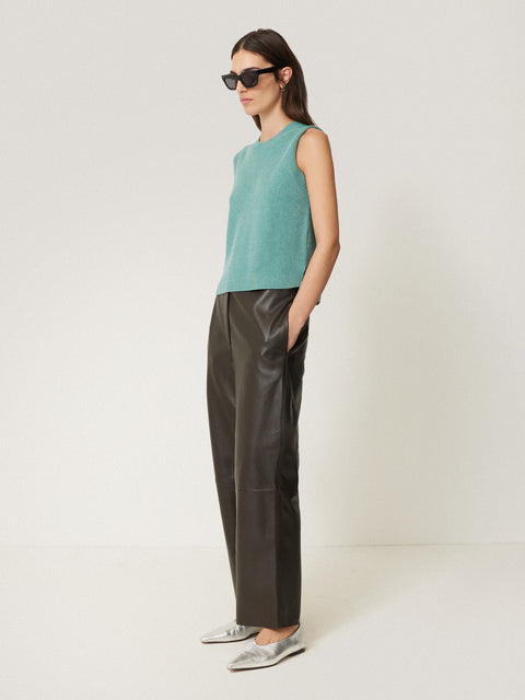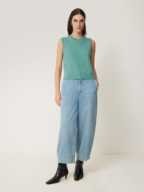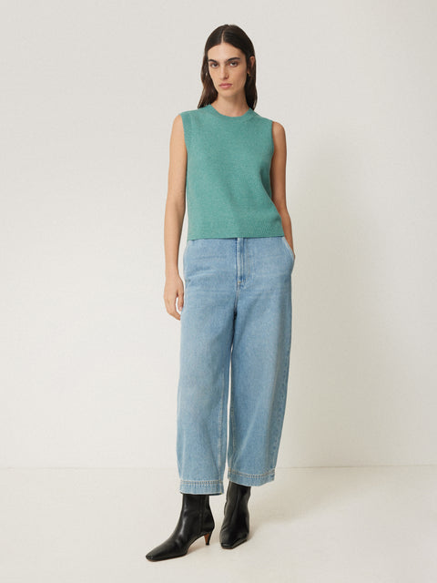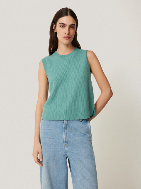 Soft Cotton blend layering tank. Constructed in a rib knit featuring angled ribs at the side seams and slits at the hem. This versatile piece promises endless combinations for your wardrobe. Wear layered over a shirt or blouse, pop over a printed dress or simply wear alone with high waisted trousers.