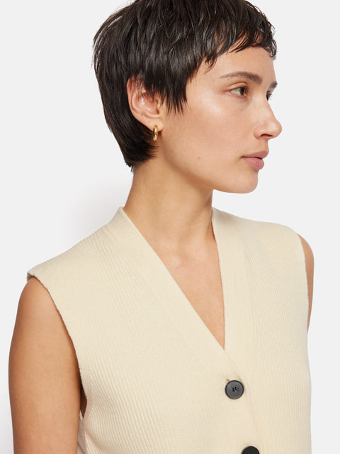 Occasionally, reinventing things leads to the discovery of new favourites. Our iconic best-selling cotton blend tank has been transformed into a waistcoat iteration, providing fresh possibilities for layering.