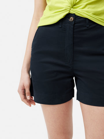 Bestselling classic chino shorts with side and back pockets and zip fly. Casual mid-thigh length, wear with trainers and a spring jacket. Fit and Features