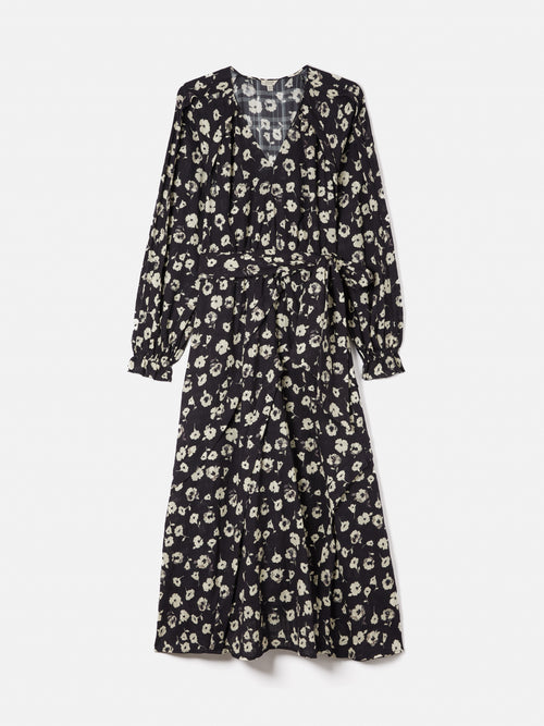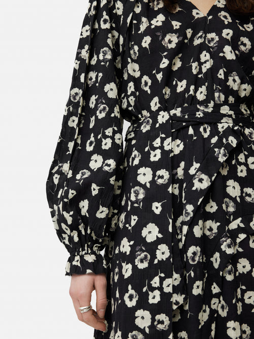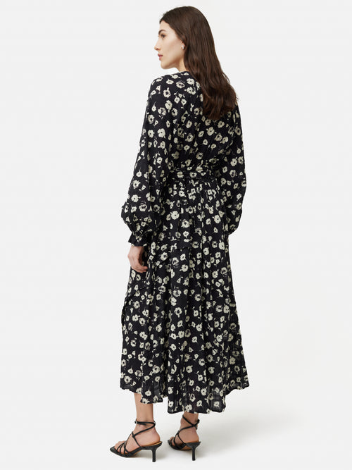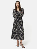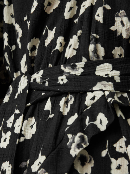 Cotton Floral Belted Dress | Black