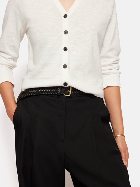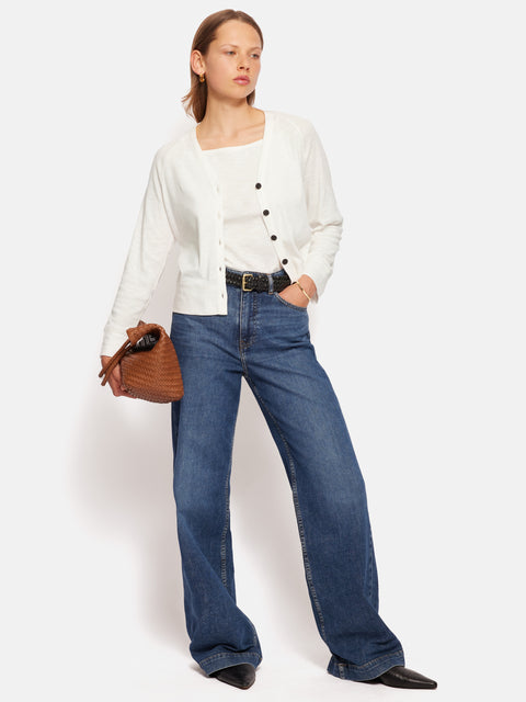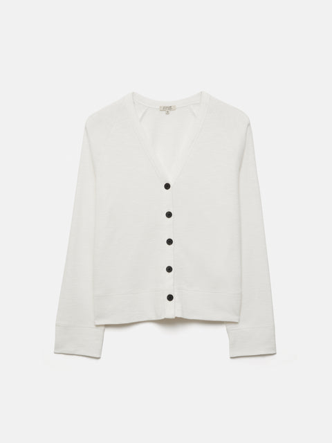Beautifully encapsulating quiet summertime elegance, the Cotton Luxe Cardigan is cut from cotton slub jersey. The perfect summer holiday companion, this is our lightest weight cardigan, ready for cooler mornings, sunsets and travelling.