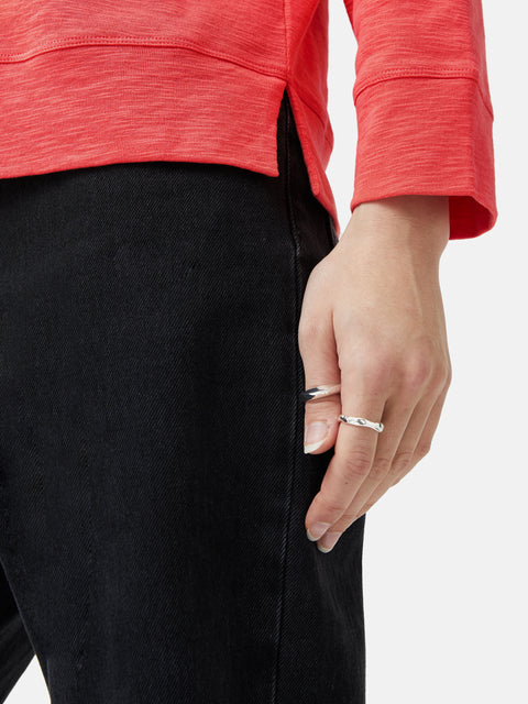 Luxurious cotton top cut from a beautifully textured slub jersey. This thoughtfully designed wardrobe staple is inspired by the iconic baseball tee with raglan armholes and deep hem band. An effortless piece that is equally suited for layering or wearing alone.