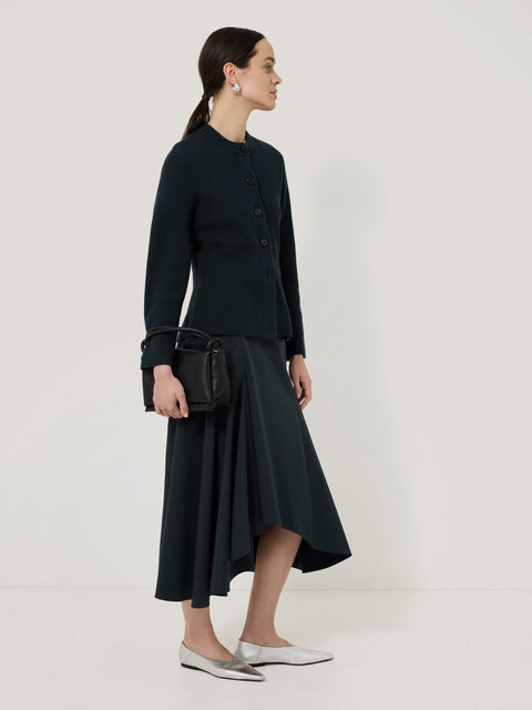 Asymmetric panels are bought together to create this versatile midi skirt. Crafted from a smooth, lightweight cotton that's perfect for warmer weather, extra flare is added into the skirt for subtle drama.
