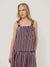 Designed as part of a playful summer two-piece, this cami top in cotton slub jersey is enlivened with a bold ticking stripe in key colours for the season; lilac and oxblood. Ruched straps add a textural twist to this everyday summer top.
