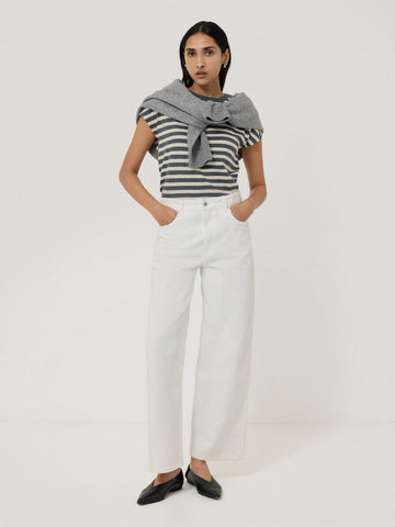 Perfect for adding a Gallic spin on your look, this striped top has been crafted from a soft, cotton slub fabric for a lived-in look with a ribbed trim and cap sleeves.