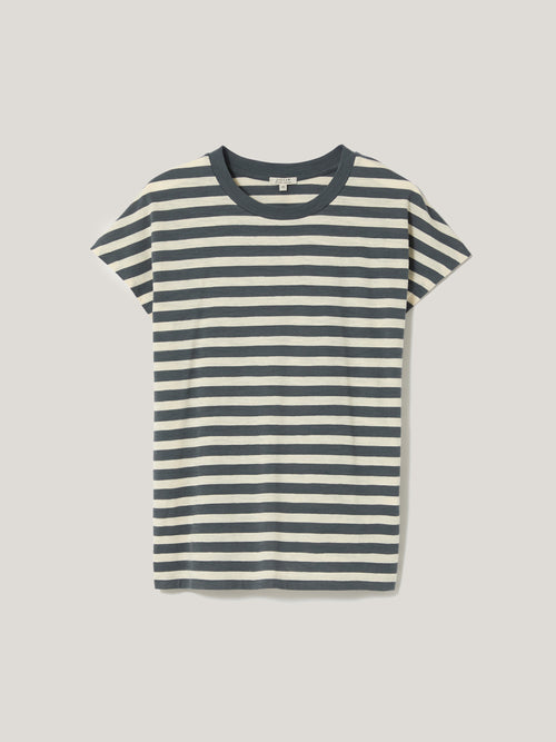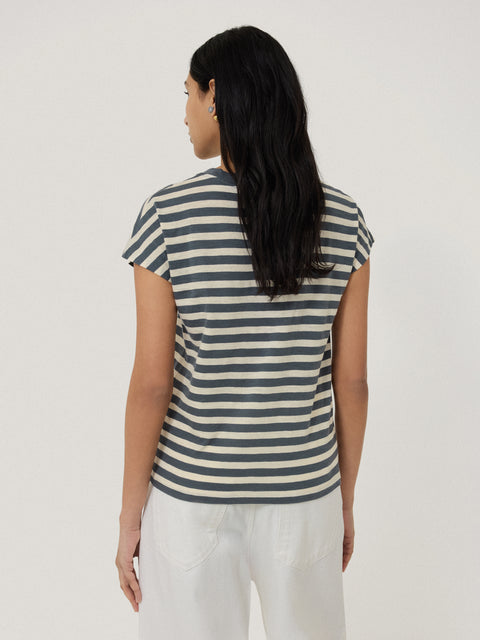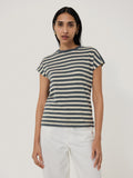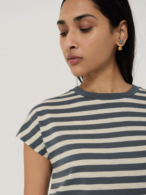 Cotton Slub Stripe Cap Sleeve Top | Grey