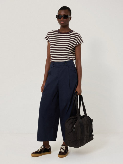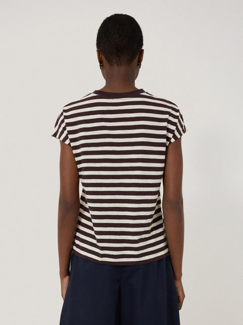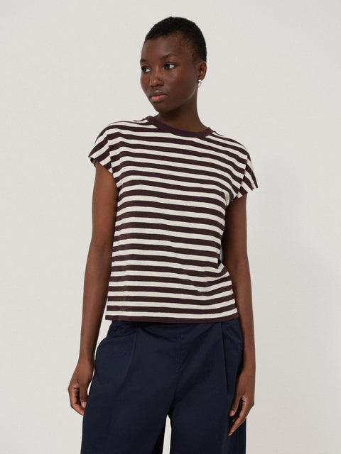 Perfect for adding a Gallic spin on your look, this striped top has been crafted from a soft, cotton slub fabric for a lived-in look with a ribbed trim and cap sleeves.