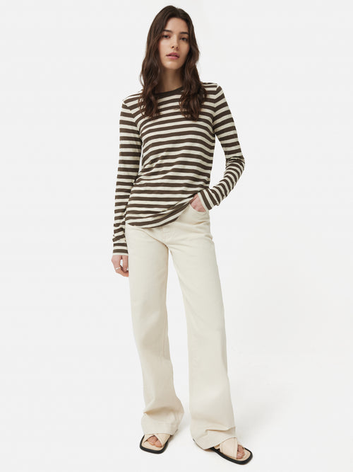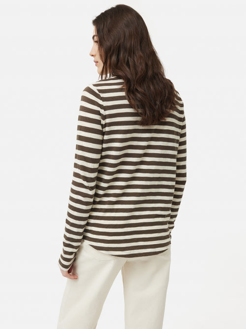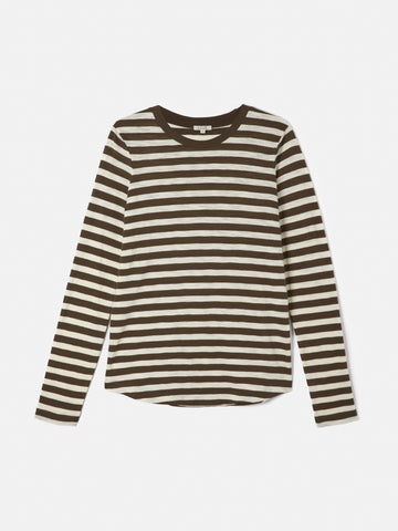 Cotton Slub Stripe Long Sleeve Tee | Brown