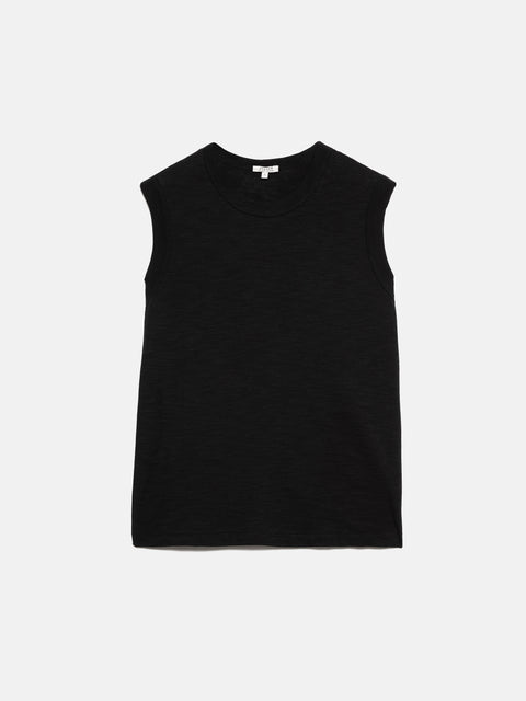 The tank is the staple of the season. Natural slub in the cotton gives its this understated charm. Tuck into tailored trousers or jeans for a more fitted silhouette.