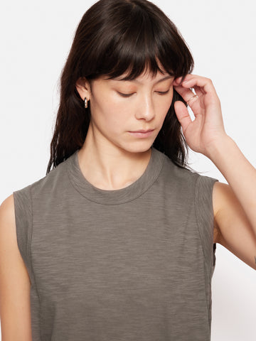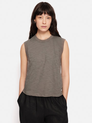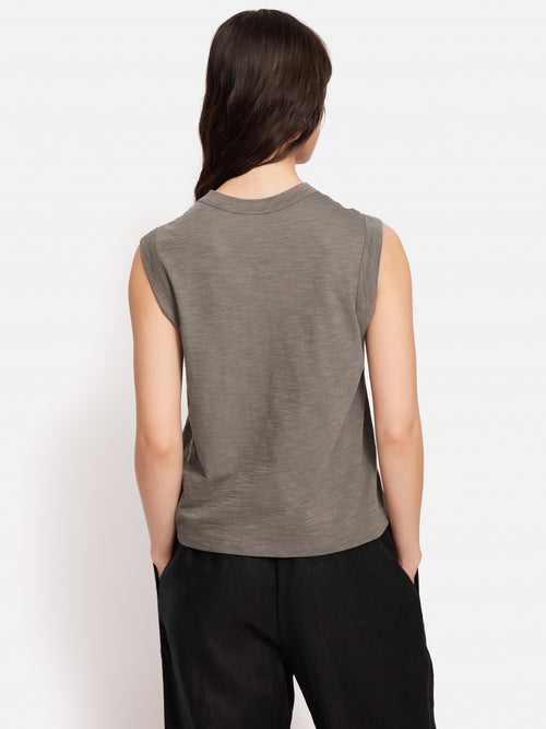 A wardrobe staple, crafted from a pure cotton with a natural slub and elevated wide trims at the shoulder and neck, this tank is contemporary and classic. Style with a pair of jeans for pared-back chic.