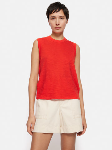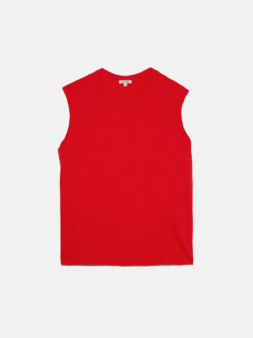 The tank is the staple of the season. Natural slub in the cotton gives its this understated charm. Tuck into tailored trousers or jeans for a more fitted silhouette.