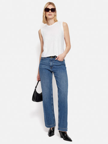 The tank is the staple of the season. Natural slub in the cotton gives its this understated charm. Tuck into tailored trousers or jeans for a more fitted silhouette.